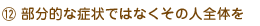 | 機能していない部分としての症状に着目するのではなく、人の全体というものを受け入れ、良い部分や機能している部分に着目することを目指す。 |
