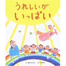 ももこの提案で、さとるのつくった泥団子の花壇に、みちるが花の種をまいた。花が咲いてうれしくなったら、はじめが大きなホットケーキをつくり、それを食べてうれしくなったりさこが、、、。うれしいから、得意なことでみんなにうれしいことをしてあげる。うれしい気持ちがいっぱいいっぱい広がっていく。「うれしいがいっぱい」の歌を絵本にしました。 |