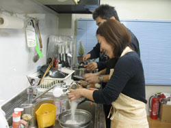 みんなでご飯をつくって食べるって、当たり前のようで、あんまり普段なかなかみなさんできていないから、結構感激してくれます。よく見える方はスタッフと一緒につくってくれたり、初めて来た方が手伝ってくださったり、自然にそのような感じになっていますね。 |