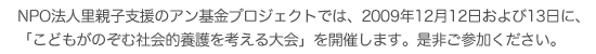お問い合せ   ミッション   開設までのプロセス バナー/リンクについて 使用上の留意点 プライバシー 里親子支援のアン基金プロジェクト